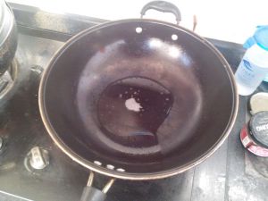 把锅烧热,然后倒入油。一定要热锅凉油。