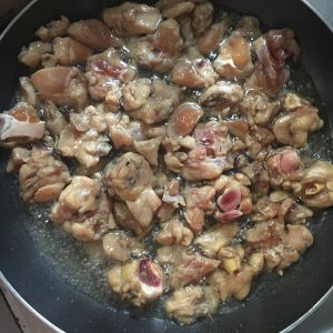 3、同样油温8成热,把已经炸过的鸡肉块复炸。盛出待用