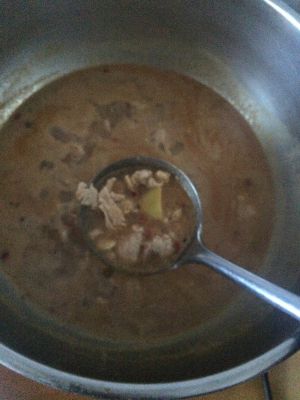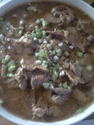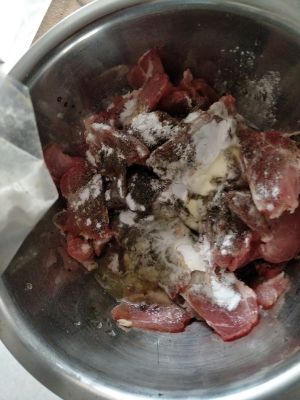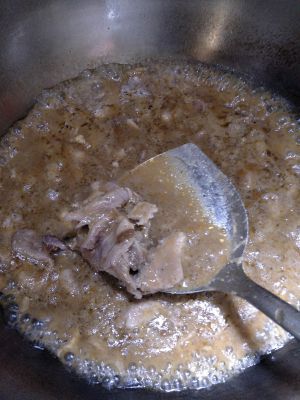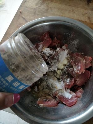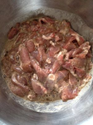 放入一点凉拌酱油,在加入一点白酒或料酒!<料酒味道不太好,我就加了点白酒,这样肉会嫩一些>(味达美什么凉拌都可以,但是觉得还是味达美口味好)