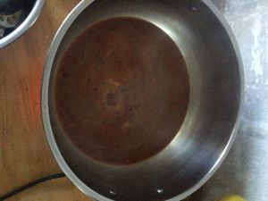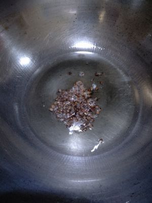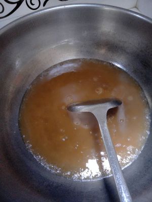 锅里面加少许的油烧到6成热,然后把黄豆酱加入到里面炒香(豆瓣酱依个人口味加入,因为豆瓣酱有点咸,所以不需要外加盐了!切记小火)