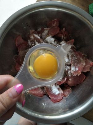 放入蛋清(别放蛋黄,不然肉不嫩了)