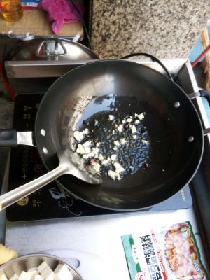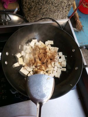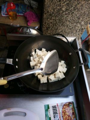 倒入豆腐,不要马上翻炒,等一下翻个面!!