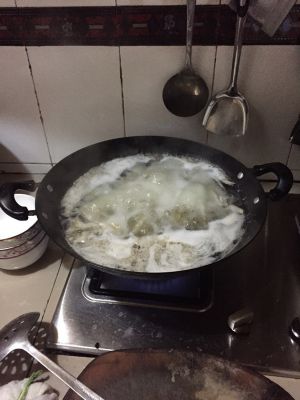 小米泡椒,姜片和花椒加1000ml水煮上5分钟。小米椒可以切开,辣味足。