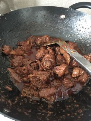 翻炒时干时 加入 酱油和盐 ,由于我的油少,辣椒容易胡,可以时不时往里加点水、不干锅就行,炒15分钟后,倒水淹到一半的位置,焖烧15分钟,鸡软了几可以了。