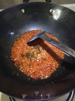 葱姜蒜也丢下去一起嗨。煸炒一会,把香味都炒出来!