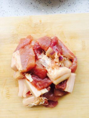 排骨切段,清水洗掉血水泡一泡,然后捞出。放入蒜末,姜末,料酒,生抽以及其他调味料,腌15分钟左右或者更久些。