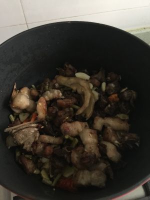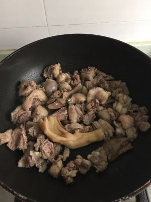 锅加热:锅热了放油,下鸭子,把它炒韵,放4—5冰糖