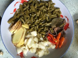 酸豆角大蒜干辣椒姜切好