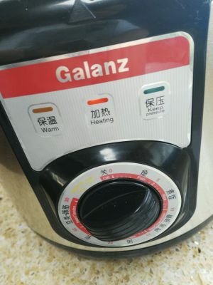 高压锅盖好,选择“肉鸡排骨”档,煲压肉。