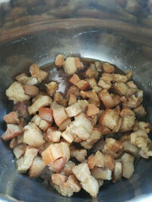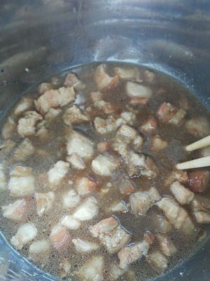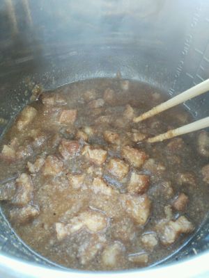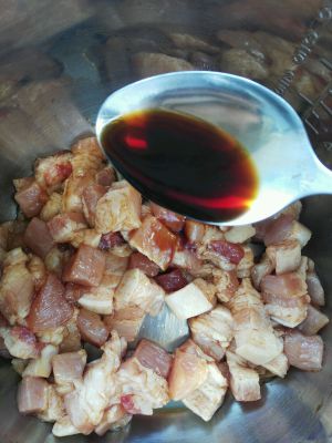 小块放电高压锅里,加入生抽拌匀。