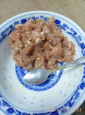 肉沫加入料酒,生抽,白糖,食盐拌匀。