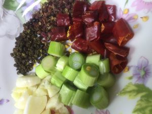 辣椒 葱 蒜 切段 准备花椒 麻椒 ,多麻椒少花椒