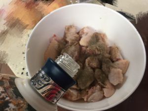 用盐、胡椒、和白酒腌一下,我没有用料酒,感觉白酒更香