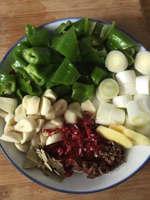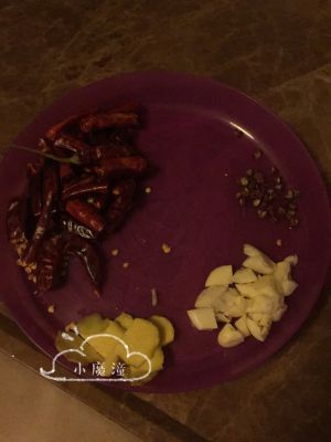 辣椒剪半、花椒数量、姜小戳切片、蒜头切碎