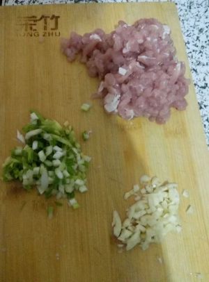 肉切成肉末,葱蒜切末