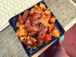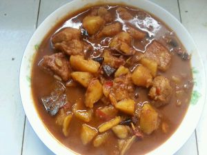 把锅內水烧到差不多收汁,(喜欢土豆软一点的可以再加水继续烧一会儿)装盘盛饭可以开动啦!