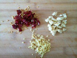 准备配料腌排骨,姜末,蒜末,干辣椒