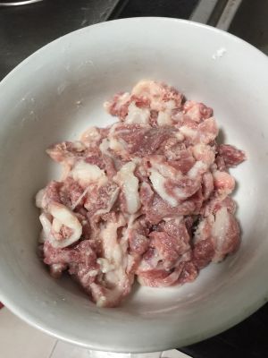 肉中加一点盐,姜末,生抽、料酒抓匀