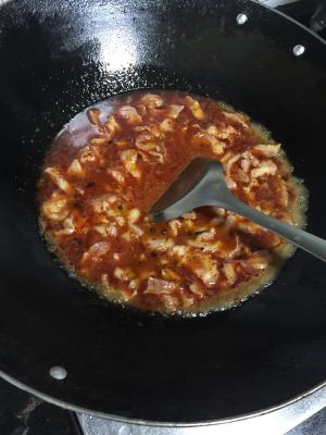 加入腌好的肉 烧两分钟(不要烧太久 肉会老)