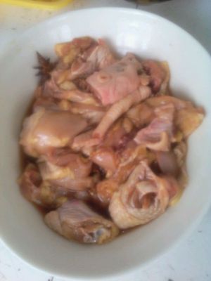 鸡肉加生抽料酒老抽八角花椒姜片腌制入味