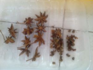 准备若干八角花椒 锅入油稍微热后将八角花椒放入炸香,将略微变色的大料铲出。