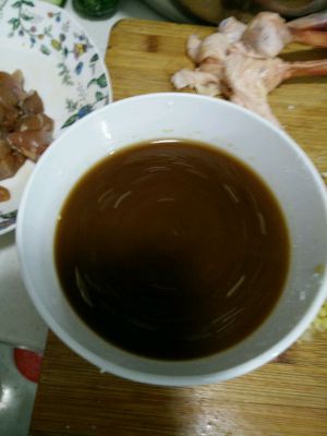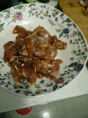 鸡大腿把肉剔出切小丁,放酱油、料酒、十三香腌制半个小时。