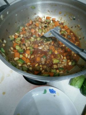 胡萝卜和黄瓜要炒熟时,放调好的汁。