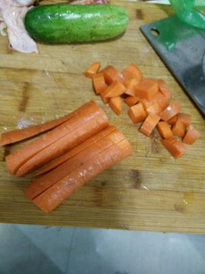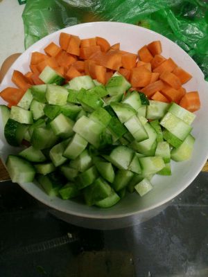 黄瓜,胡萝卜切丁备用。