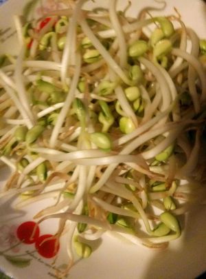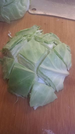 豆芽菜洗净,圆白菜先切成这样再洗干净,葱姜蒜为末,如果不讨厌蒜味儿可以适量多放一些哈。