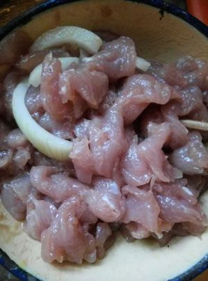瘦肉切成薄片,加鸡蛋清,淀粉,盐,酱油,生粉,腌制15分钟。