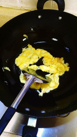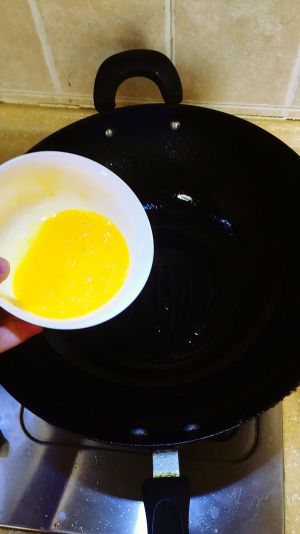 准备的白米饭,最好是过夜饭,现煮的饭水要放少点,饭太烂太软不好炒。锅里放油,倒入米饭炒散,放入适量盐和酱油翻炒均匀。