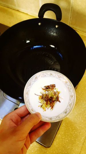 将葱末炒熟后捞出来,葱末就可以倒掉不用