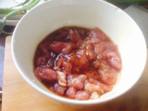 锅里放入一点油,把里脊肉过油,待变色盛出