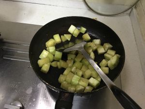 倒入面粉,让其裹住每一块茄子即可