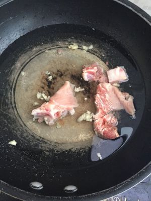 排骨清洗(只有几块,因为是剩下没烧完的,大家可以多放一些啊),冷水下锅,加入姜,蒜,少许黄酒(去腥)