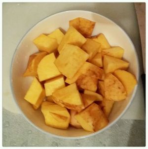 黄独切成方块。