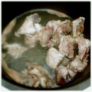 排骨在沸腾的水里煮5分钟,捞起