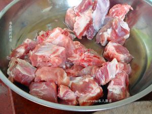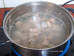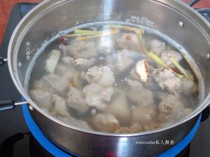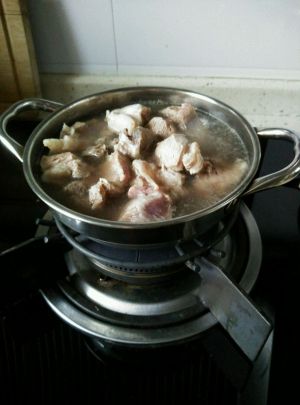 焯水。这道工序很重要,一定要在排骨洗干净以后放到锅里冷水大火焯水,然后冲洗掉血沫,这样就不会有肉腥味了。