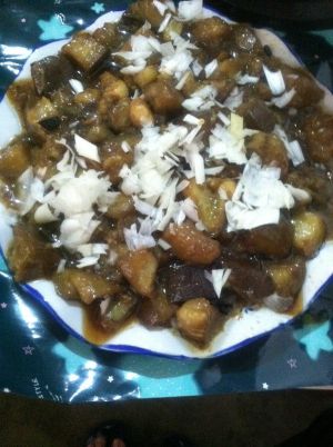 稍微加点水,加点盐,收一下汤汁。 起锅前加点鸡精,撒点葱花就可以了,也可以适当的勾点芡。这次做的茄子卖相不是太好,但绝对很好吃,如果你不喜欢吃茄子皮也可以炸茄子前去下茄子皮的。
