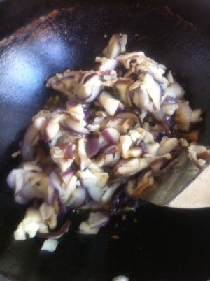 西红柿超出少于汁实,倒入过了油的茄子块,然后加入盐味精,鸡精,白糖,翻炒一分钟即可出锅!