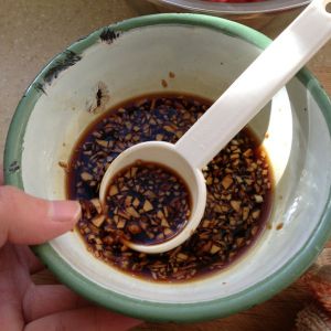 用盐、醋、酱油、料酒、葱姜蒜末调汁