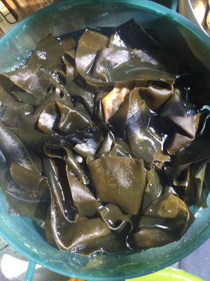 排骨再炖煮的同时把海带清洗好,切成喜欢的大小。当排骨炖了快50分钟左右,放海带(不喜欢排骨太烂的,可以少炖一会儿)