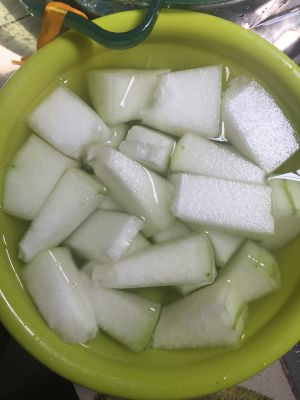 加了海带后,炖了30分钟左右,放切好的冬瓜,冬瓜我炖了约20分钟,看切块的大小算时间,只要冬瓜软了就可以,起锅了。