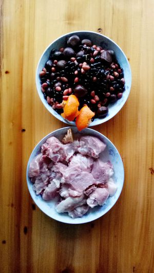 食材准备齐全,因为本人喜欢吃黑豆和花生,所以放得有点多,黑豆要提前浸泡一晚上,排骨,黑豆,花生,橘皮,板栗洗净,然后这边先把板栗放进加水的锅里煮开后,再煮几分钟,然后捞出,放在冷水里浸泡会,这样板栗壳才好去掉,里面那层薄皮也要去掉。