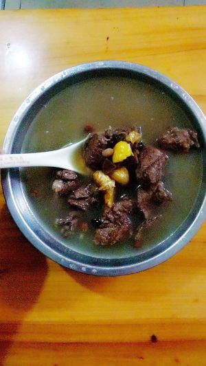烧水把排骨,板栗,生姜,橘皮,黑豆放进锅里煮,然后放适量的盐,煮到黑豆差不多快熟了时再放花生,然后再煮一会就可以咯!香喷喷的!