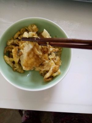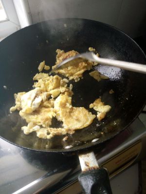 然后用锅铲 铲成大块 炒至凝固 装盘备用