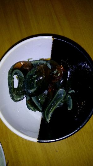 锅底加油、蒜,爆锅,炒黄瓜片,再加入皮蛋碎(这个忘了拍),翻炒。加入一碗水。开锅后加盐调味。