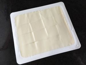 豆腐切片,稍微切大点这样不易碎,放入盐水中浸泡半小时可以去豆腥味。或者在水里稍微焯一下。不讲究的同学可以直接在豆腐上撒些盐放在一边就行!