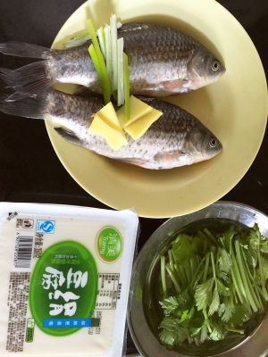 野生鲫鱼2条,菜场去鳞去内脏后,回家清洗干净,用厨房用纸擦干备用。同时,姜切片,葱切段备用。