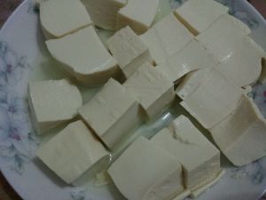 豆腐切成两厘米见方的小块